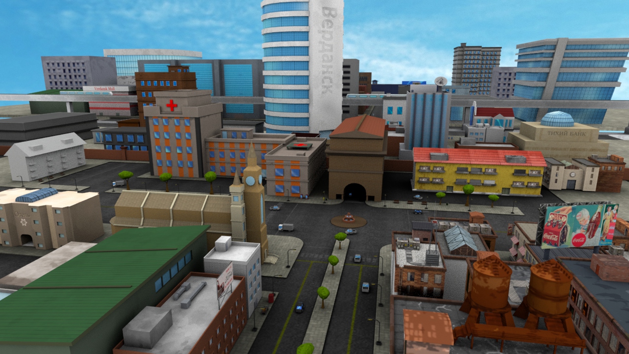 3D city model inspired by Call of Duty: Warzone battle royale map, Verdansk.